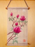 麻生地に紫木蓮を手描きした小さめなタペストリーです。