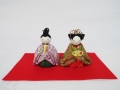 レーヨンちりめんの着物を着せたひな飾りです。<br>ひとつひとつ手縫いにより丁寧に作られています。 サイズ:内裏様 横:約8cm×高さ:約11.5cm×奥行き:約4.5cm |
